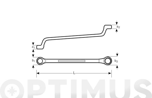 Llave de estrella de dos bocas acodada, dimensiones métricas. Según: ISO 1085, ISO 10104 y DIN 838. Material: Aleación de acero de alto rendimiento. Perfil Dynamic Drive bihexagonal que prolonga la vida de tuercas y tornillos. Cromado mate que proporciona una gran calidad superficial. Métrica 24-26 mm. L . 326 mm. a1 . 13 mm. a2 . 14 mm. b1 . 35,8 mm. b2 . 40 mm. 470 g.