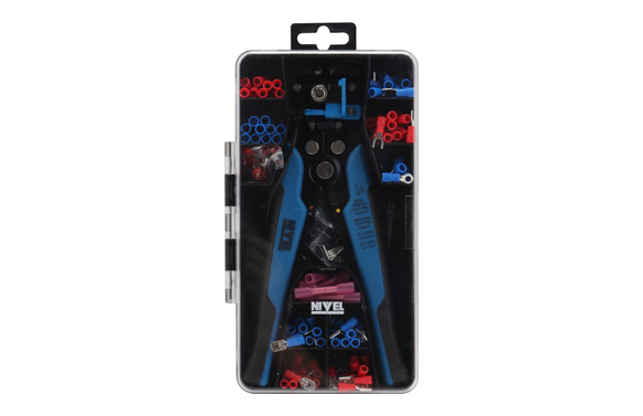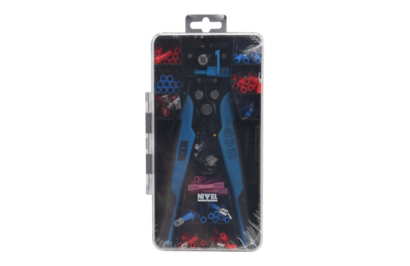 Material: crimpadora de acero A3. Mango PP+TPR. Bridas para cable de nylon. Terminales para cables de cobre. . Juego de herramientas de crimpado 231 PIEZAS compuesto por:. 1 herramienta de crimpado. 15 bridas (aprox. 100 mm). 15 alambres (aprox. 130 mm). 60 terminales de cable. 30 tapones planos. 30 manguitos de tapones planos. 20 conectores. 10 conectores a prueba de salpicaduras. 50 manguito de extremo del conductor, surtido.