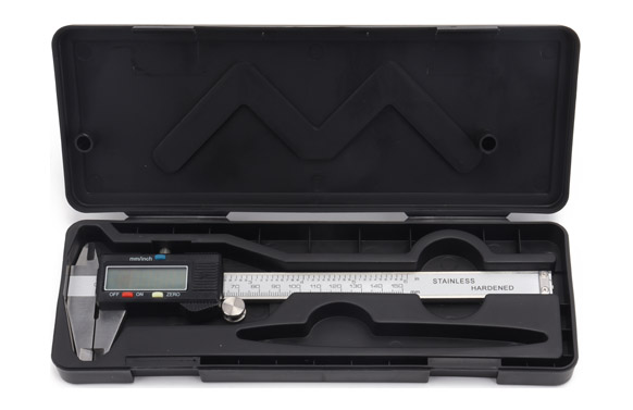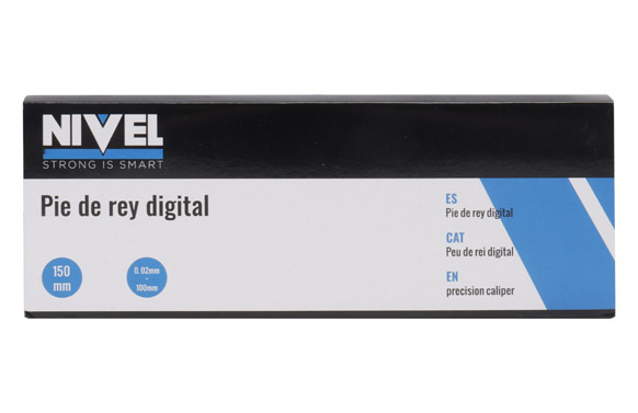 Material: Acero Inoxidable 4CR13. Precisión 0,02 MM/100 MM. Medida 0-150 mm. Lleva pila alcalina de botón incluida en el pie..