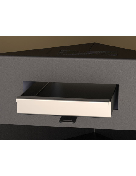 Está fabricada con materiales de alta gama resistentes a temperaturas elevadas como es el hierro fundido y la chapa en su exterior, además de tener un acabado en pintura anticalórica de color gris resistente a 650ºC. Su interior está fabricado en placas de vermiculita. Las placas de vermiculita aumentan espectacularmente el rendimiento de las estufas consiguiendo rendimientos superiores al 80%. También incluye una parrilla para asados giratioria desmontable, cajón cenicero para una limpieza fácil y sencilla y detalles en acero inoxidable para que tenga una visión más elegante.