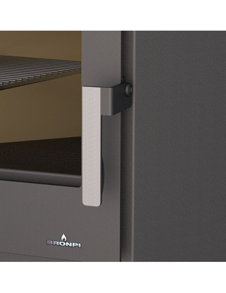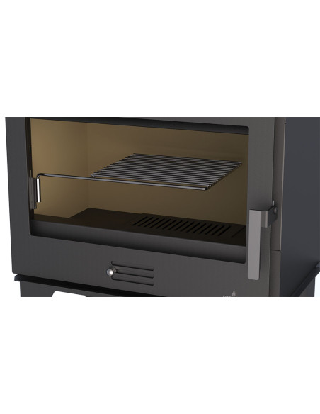 Su fabricación se ha llevado a cabo con materiales resistentes a temperaturas elevadas como es el hierro fundido y la chapa en su exterior, además de llevar un acabado en pintura anticalórica de color gris antracita resistente a 650ºC.