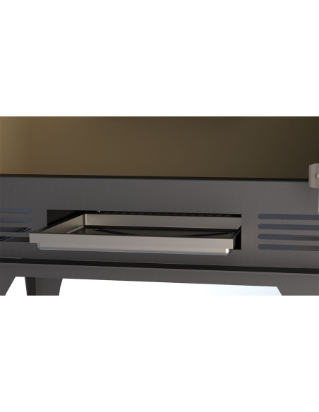 Los acabados de la maneta y cenicero en acero inoxidable dan a esta estufa, un acabado moderno que permite la instalación en todo tipo de ambientes.