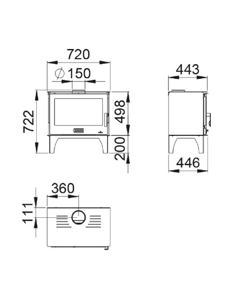 Su puerta, fabricada en fundición para mayor resistencia y de gran tamaño, permite troncos hasta un máximo de 60cm por lo que no necesitara cortar la leña en trozos pequeños permitiendo una gran capacidad de caga. El cristal panorámico aguanta hasta 750ºc e incluye, también, el sistema de cristal limpio. Este sistema funciona creando una cámara de aire entre el cristal y el fuego. De esa manera se dificulta que las partículas del fuego y del humo se adhieran al cristal y evita que se ensucie rápidamente. Así logramos conseguir una visión más limpia y perfecta del fuego.