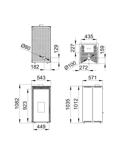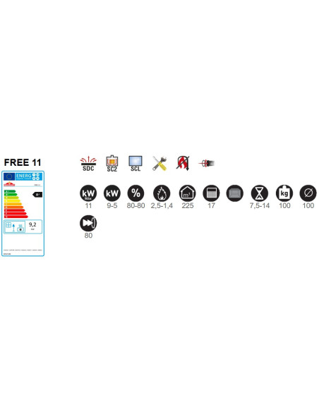 Estufa de pellet sin electricidad Bronpi FREE 11. Perfecta para lugares donde no se dispone de suministro elétrico. Disponible en dos acabados: Negro y marfil. Su rendimiento permite calentar estancias de 90m2 (225m3) Salida de humos mediante tuberia de 100mm