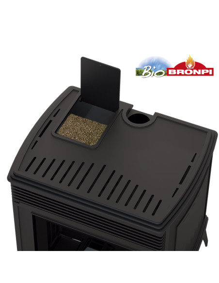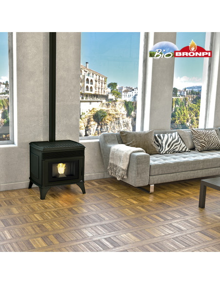 La Bronpi Nicol es una estufa de pellet realizada integramente en fundición. Es la estufa de pellet para los amantes de la estética y la forma de calentar de la leña. Transmite su calor por convección y por irradiación. Volumen calefactable hasta 150m3