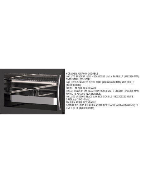 Horno con temporizador programable. Tras finalizar el tiempo de cocción elegido por el usuario, la estufa emite un aviso.