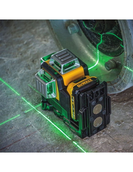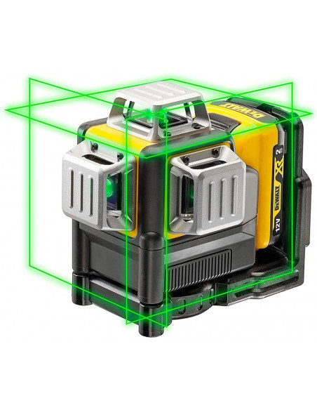 Nivel láser Verde DCE089D1G con batería 12 V de Dewalt. Nivel de 3 líneas 360° autonivelantes con Proyección de línea horizontal y vertical. Rango del láser de 30 m (50 m con detector).
